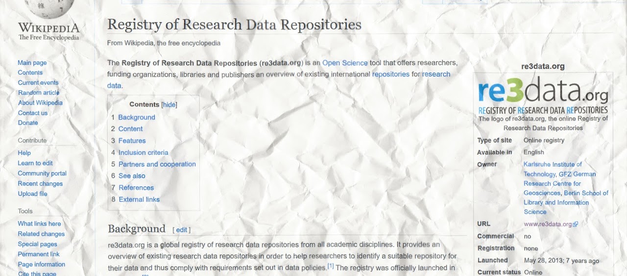 Hmmm… a printout of a Wikipedia page. Very strange. It’s about something called re3data.org - what is that? Why would the Professor print this out? And why is it apparently hidden in the waste paper bin…?
